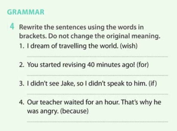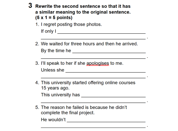 Choose option 1 or option 2 and answer all the questions from that option only. Rewrite the following sentences without changing the original meaning. The new sentence must clearly present a different linguistic structure.