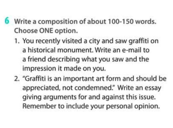 Write a composition of at least 120 words about one of the topics proposed and focus on it. Choose one topic only.