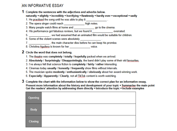 III. a) Write a composition of at least 120 words about one of the topics proposed and focus on it.