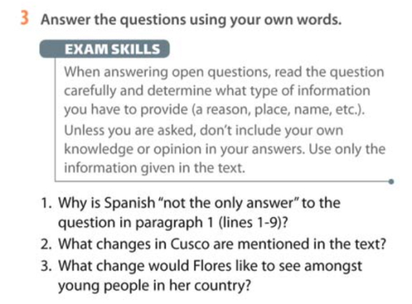 1.- Do not copy literally from the text (1 punto por respuesta = 4 puntos)