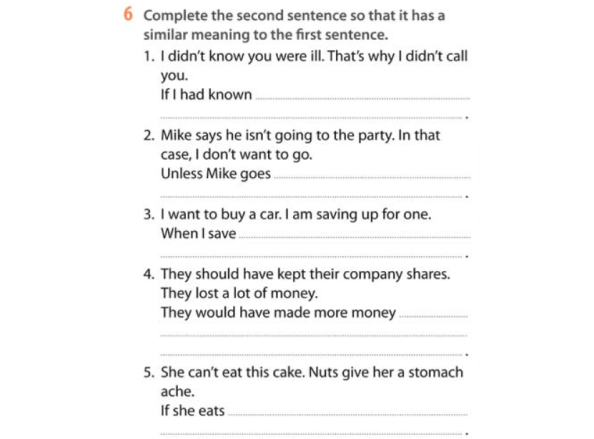 Ejercicio 2: Rephrase the following sentences so that their meaning is as similar to the original as possible (0.25 puntos por acierto = 1 punto)