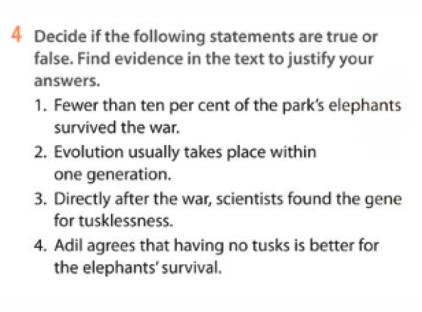(2 POINTS) (0.5 points for each correct answer). Add TRUE or FALSE and copy the evidence from the text to support your answer. No marks are given for only TRUE or FALSE. No marks are given for T or F.