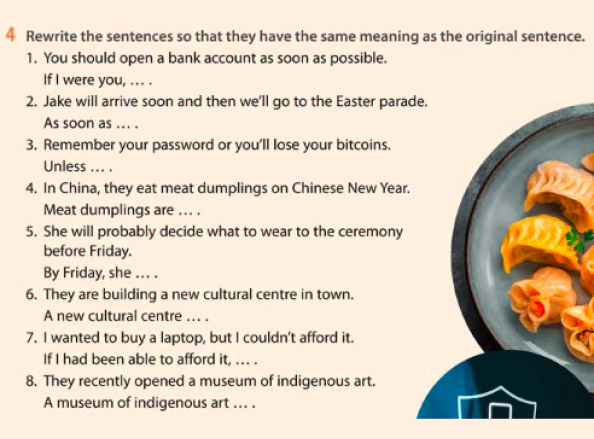(0.5 points for each correct answer). Choose SIX of these sentences and rewrite them starting with the words given. Only the first six will be corrected. No points will be given for the extra ones. Clearly identify the sentences you choose using the numbers here.