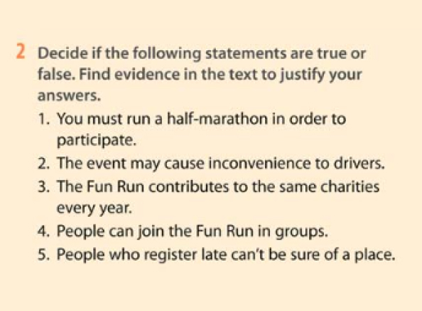 1. READING COMPREHENSION. (2 POINTS) (0.5 points for each correct answer). Add TRUE or FALSE and copy the evidence from the text to support your answer. No marks are given for only TRUE or FALSE. No marks are given for T or F