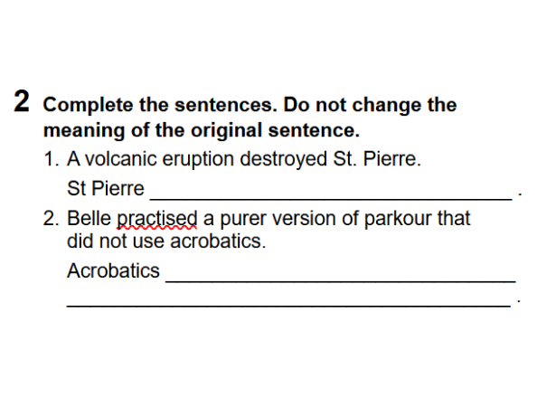 5. Complete THREE of the following five sentences so that each sentence keeps the meaning of the sentence printed before it and includes a clear change of linguistic structure. COPY THE COMPLETE SENTENCES (including the beginnings already given to you) onto your answer sheet. [3×0.5=1.5 marks]