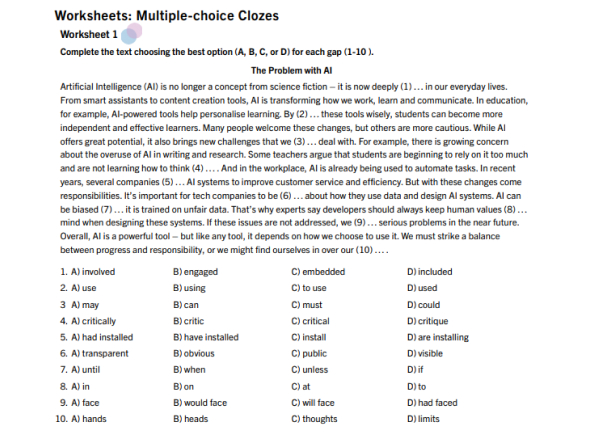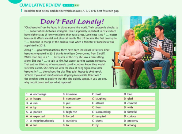 4. Complete the text by choosing the best option (A, B, or C) for each gap (1-15). On your answer sheet, draw a table like the one below and, for each gap (1-15), copy the letter that corresponds to your answer (A, B, or C). Use CAPITAL LETTERS. [15×0.1=1.5 marks]